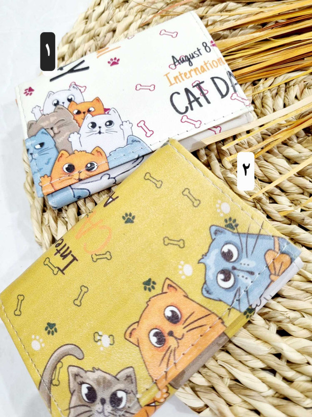 کیف پول جاکارتی فانتزی طرح گربه چرم صنعتی